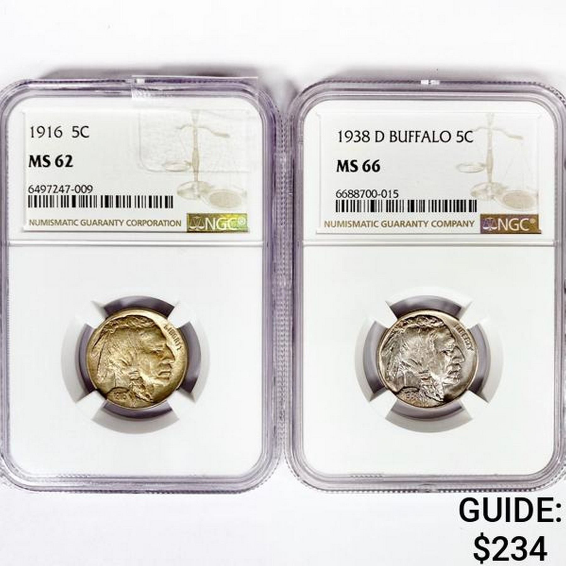 1916-1938 SET (2) Buffalo Nickel NGC MS
