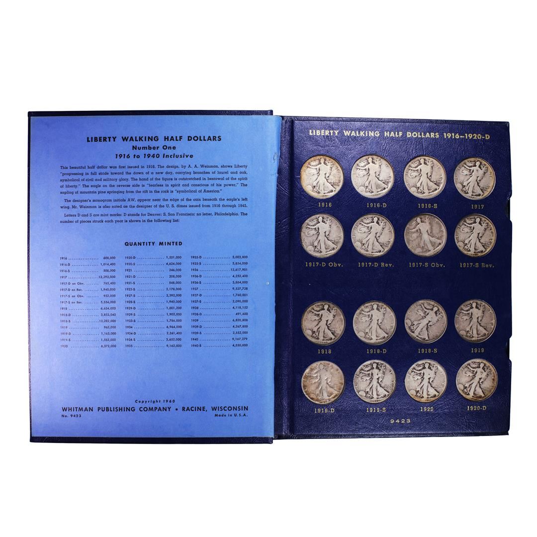 One 1916-1940 Walking Liberty Half Dollar Coin Set in Folders.