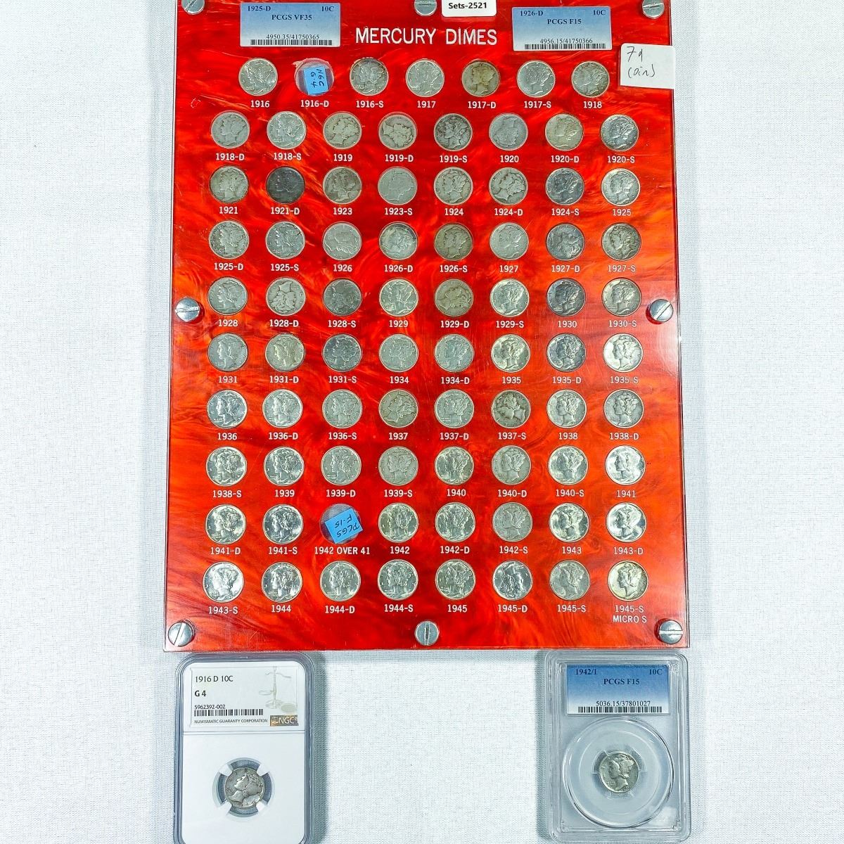 1916-1945 Complete Mercury Silver Dime Set XF-BU
