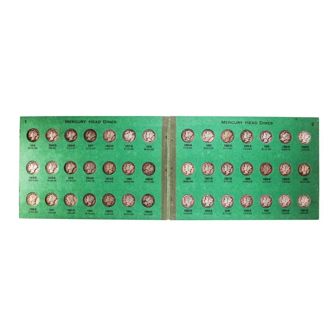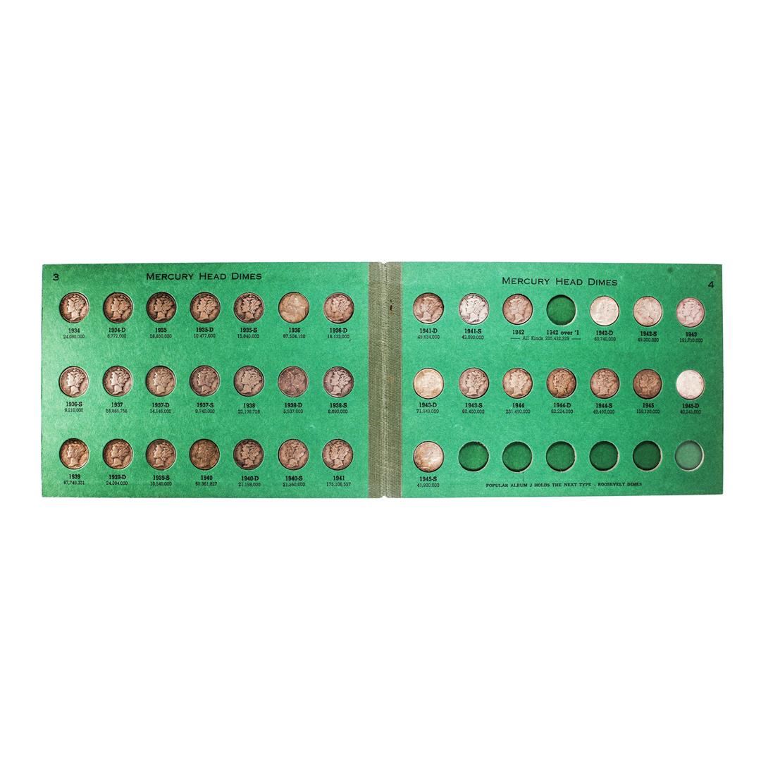 One 1916-1945 Mercury Head Dimes in Book, this set contains all of the coins from the set except the 1942 over 1 overdate coin.