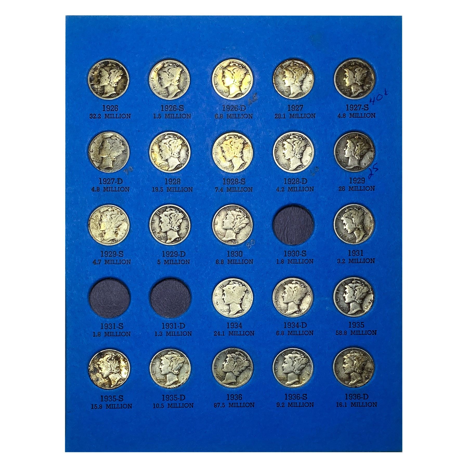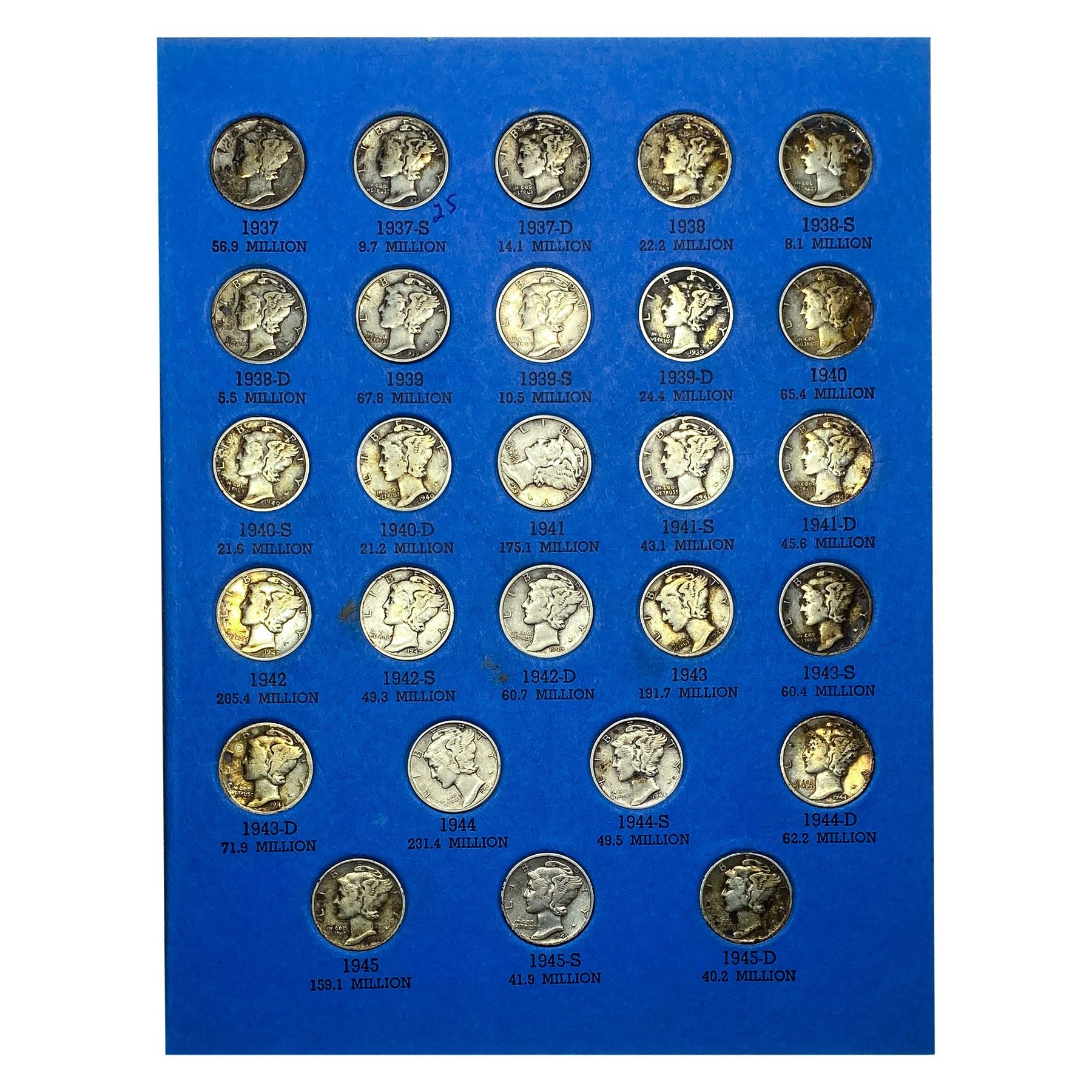 1916-1945 Near Complete Mercury Dime Set [69 Coins]
