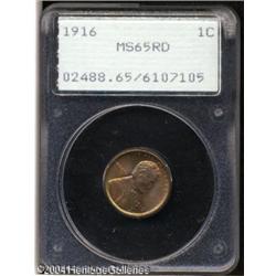 1916 1C MS65 Red PCGS. Mint-green and apricot colo <B>1916 1C MS65 Red PCGS.</B></I> Mint-green and apricot coloration adorns each side of this sharply struck, virtually pristine Gem. Beautifully frosty luster sparkles from the bright surfaces, from within the hard plastic walls of a first-generation PCGS holder. <BR><BR><B>Important notice:</B> Heritage usually auctions material at the rate of 200-250 lots per hour. On some occasions eBay Live bid software or the Internet may not be able to keep up with the pace of the auction. We recommend placing a realistic absentee bid now as insurance to avoid disappointment. Occasionally the auctioneer may eliminate or reject an eBay Live bid, and the auctioneer may also reopen a lot after the close of the eBay live bidding (usually because we missed an audience bid), and may reject your bid even if it shows you as the winning bidder. By bidding via eBay Live, you agree that Heritage may award the lot to another bidder at its sole discretion under the circumstances described above or any other reasonable circumstances. Since eBay bids are not shown to us until we open the lot on the floor, we treat those bids just like floor bids. In most cases the floor responds before the eBay bid is presented to us, due to Internet lag time, so for consistency we have made it a policy that floor bids are always considered first over tie eBay live bids. Also please note that all Heritage lots purchased through eBay Live carry a 20% Buyer's Premium. Please make sure you read the Terms and Conditions before you bid. This lot is being auctioned in conjunction with a live floor auction by Heritage Galleries & Auctioneers. All final auction and invoice information will be supplied by Heritage Galleries & Auctioneers, and all other information should be considered preliminary. Lot:5256