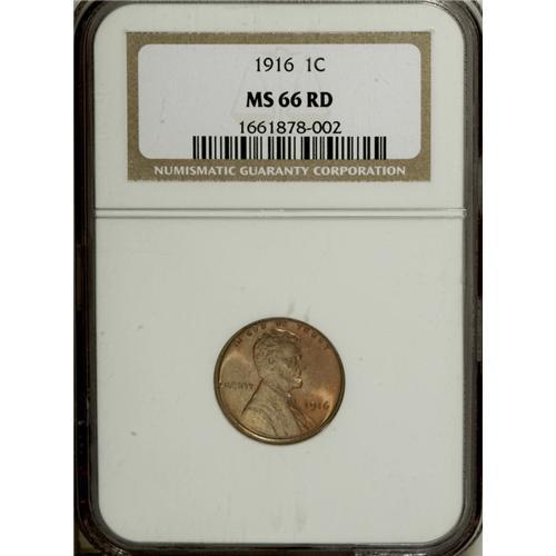 <B>1916 1C MS66 Red NGC.</B></I> Orange-gold and tan-gold blend beautifully on this gorgeous Premium Gem, which shows no visible carbon and a bold strike. The brilliant luster is unimpeded throughout. Nearly unimprovable at NGC, which has certified only two pieces finer (4/07).<BR><BR><b>Shipping:</b> Coins & Currency (<a target="_blank" href="http://www.heritageauctions.com/common/shipping.php">view shipping information</a>)