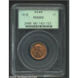 1916 1C MS66 Red PCGS. A well struck and lustrous Gem with immaculately preserved surfaces and pleasing yellow-rose color. Carbon-free and attractive.From the Francis Sullivan Collection. Important notice: We expect to be auctioning lots at the rate of 200-250 per hour. Sometimes eBay Premier live bid software cannot keep up with that pace, so we strongly recommend that you place a realistic proxy bid now as insurance to avoid disappointment. Also please note that all Heritage/CAA lots purchased through eBay Premier carry a 20% Buyer's Premium. Please make sure you read the Terms and Conditions.