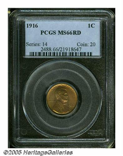 <B>1916<1C> MS66 Red PCGS.</B></I> Attractive yellow-red color, pretty undulating luster and unadulterated Superb-Gem eye appeal.