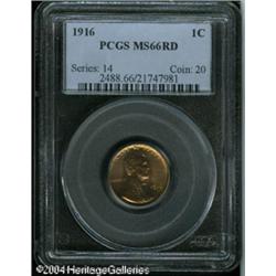 1916 1C MS66 Red PCGS. Light peach and lime colors <B>1916 1C MS66 Red PCGS.</B></I> Light peach and lime colors grace this well struck and semi-prooflike premium Gem. A tiny spot on the reverse near 7 o'clock prevents a finer assessment. <BR><BR><B>Important notice:</B> Heritage usually auctions material at the rate of 200-250 lots per hour. On some occasions eBay Live bid software or the Internet may not be able to keep up with the pace of the auction. We recommend placing a realistic absentee bid now as insurance to avoid disappointment. Occasionally the auctioneer may eliminate or reject an eBay Live bid, and the auctioneer may also reopen a lot after the close of the eBay live bidding (usually because we missed an audience bid), and may reject your bid even if it shows you as the winning bidder. By bidding via eBay Live, you agree that Heritage may award the lot to another bidder at its sole discretion under the circumstances described above or any other reasonable circumstances. Since eBay bids are not shown to us until we open the lot on the floor, we treat those bids just like floor bids. In most cases the floor responds before the eBay bid is presented to us, due to Internet lag time, so for consistency we have made it a policy that floor bids are always considered first over tie eBay live bids. Also please note that all Heritage lots purchased through eBay Live carry a 20% Buyer's Premium. Please make sure you read the Terms and Conditions before you bid. This lot is being auctioned in conjunction with a live floor auction by Heritage Galleries & Auctioneers. All final auction and invoice information will be supplied by Heritage Galleries & Auctioneers, and all other information should be considered preliminary. Lot:5261