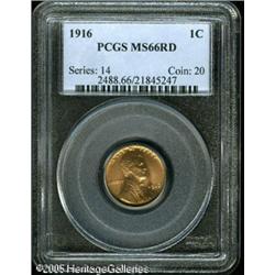<B>1916 1C MS66 Red PCGS.</B></I> This sparkling premium Gem has a remarkably fresh appearance for a coin minted almost ninety years ago. Well struck, highly lustrous and impressively preserved, a small contact mark on the upper left reverse, just above the wheat ear, is the only easily discernible defect on either side, and it is certainly not a serious issue. Extremely scarce any finer. Lot:5432