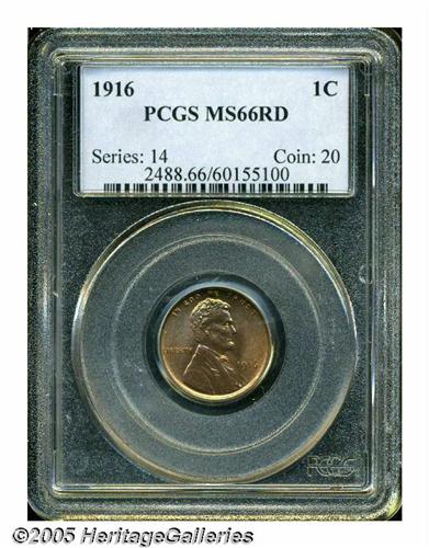 <B>1916<1C> MS66 Red PCGS.</B></I> Well struck and lustrous, with attractively toned surfaces that seem entirely free of marks, even under close inspection with a magnifier. There are only a few tiny flyspecks to prevent us from describing this lovely premium Gem as carbon-free. Population: 199 in 66 Red, 31 finer (4/05).