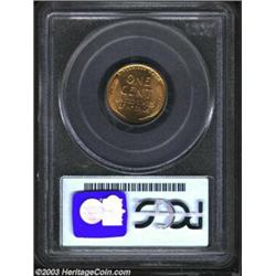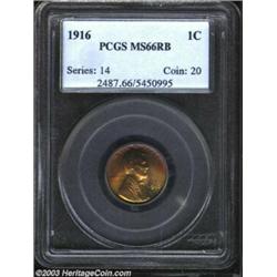 1916 1C MS66 Red and Brown PCGS. Pristine golden-orange surfaces are accented with a crescent of...