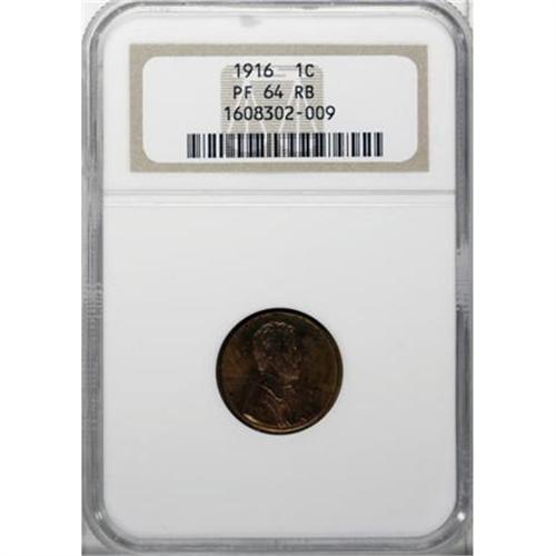 <B>1916 1C PR64 Red and Brown NGC.</B></I> Reddish-gold patina occupies the obverse, while the reverse assumes gold, yellow-green, and violet. The design elements are well impressed. A couple of tiny flyspecks are seen on the obverse.<BR><BR><B>Coin Engraver:</B> Victor D. Brenner<BR><BR><b>Shipping:</b> Coins & Currency (<a target="_blank" href="http://www.heritageauctions.com/common/shipping.php">view shipping information</a>)
