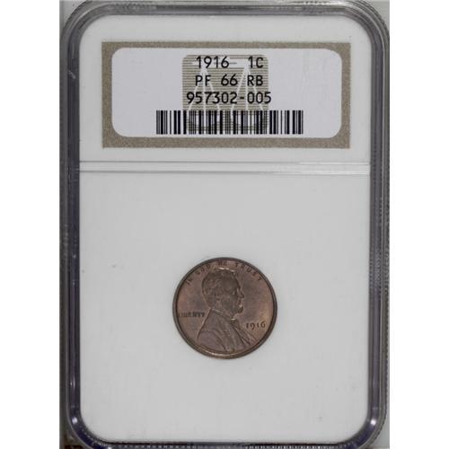 <B>1916 1C PR66 Red and Brown NGC.</B></I> This matte-textured proof has pinpoint striking definition with ample orange-red color adhering to both sides. The toning that has formed is mottled in appearance with colors that vary from glossy-brown to pale violet shades. An especially well preserved example from a mintage of only 1,050 pieces. The final year of matte proof production. Population: 8 in 66, 1 finer (10/06).<BR><I>From The James Paul Collection.</B></I><BR><BR><b>Shipping:</b> Coin/Currency (<a target="_blank" href="http://www.heritageauctions.com/common/shipping.php">view shipping information</a>)