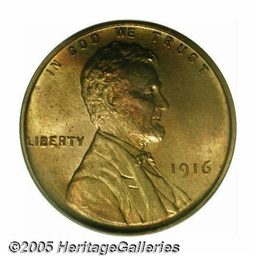 <B>1916<1C> PR66 Red and Brown PCGS.</B></I> An even finer specimen of this final collectible matte proof Lincoln issue, one of a mere 1,050 pieces struck. In addition to the coin's expected pinpoint sharpness, both sides have acquired splashes of lovely rose and emerald-green iridescence, being essentially void of unsightly carbon. Population: 11 in 66, 1 finer (4/05).