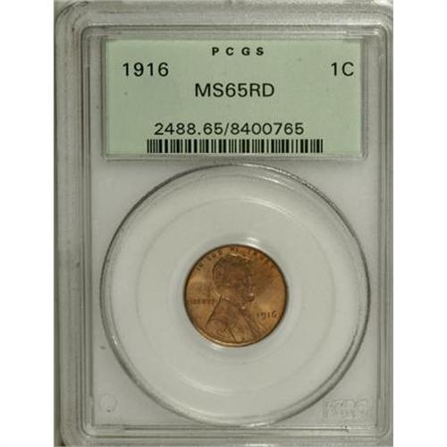 <B>1916 1C MS65 Red PCGS.</B></I> PCGS Population (346/217). NGC Census: (91/28). Mintage: 131,833,680. Numismedia Wsl. Price for NGC/PCGS coin in MS65: $125. (#2488)<BR><BR><B>Coin Engraver:</B> Victor D. Brenner<BR><BR><b>Shipping:</b> Coins & Currency (<a target="_blank" href="http://www.heritageauctions.com/common/shipping.php">view shipping information</a>)