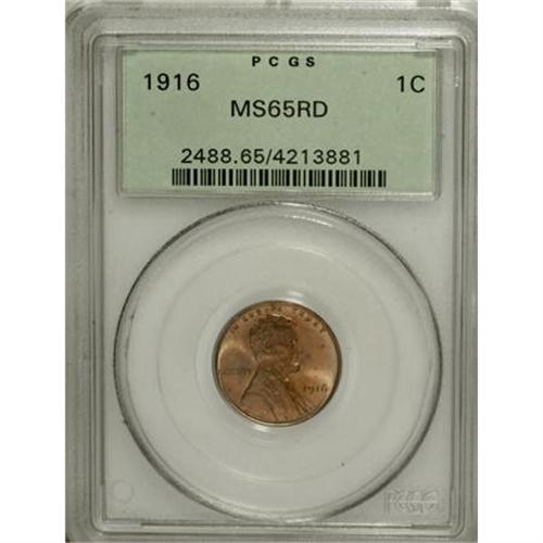 <B>1916 1C MS65 Red PCGS.</B></I> PCGS Population (348/224). NGC Census: (91/28). Mintage: 131,833,680. Numismedia Wsl. Price for NGC/PCGS coin in MS65: $125. (#2488)<BR><BR><B>Coin Engraver:</B> Victor D. Brenner<BR><BR><b>Shipping:</b> Coins & Currency (<a target="_blank" href="http://www.heritageauctions.com/common/shipping.php">view shipping information</a>)