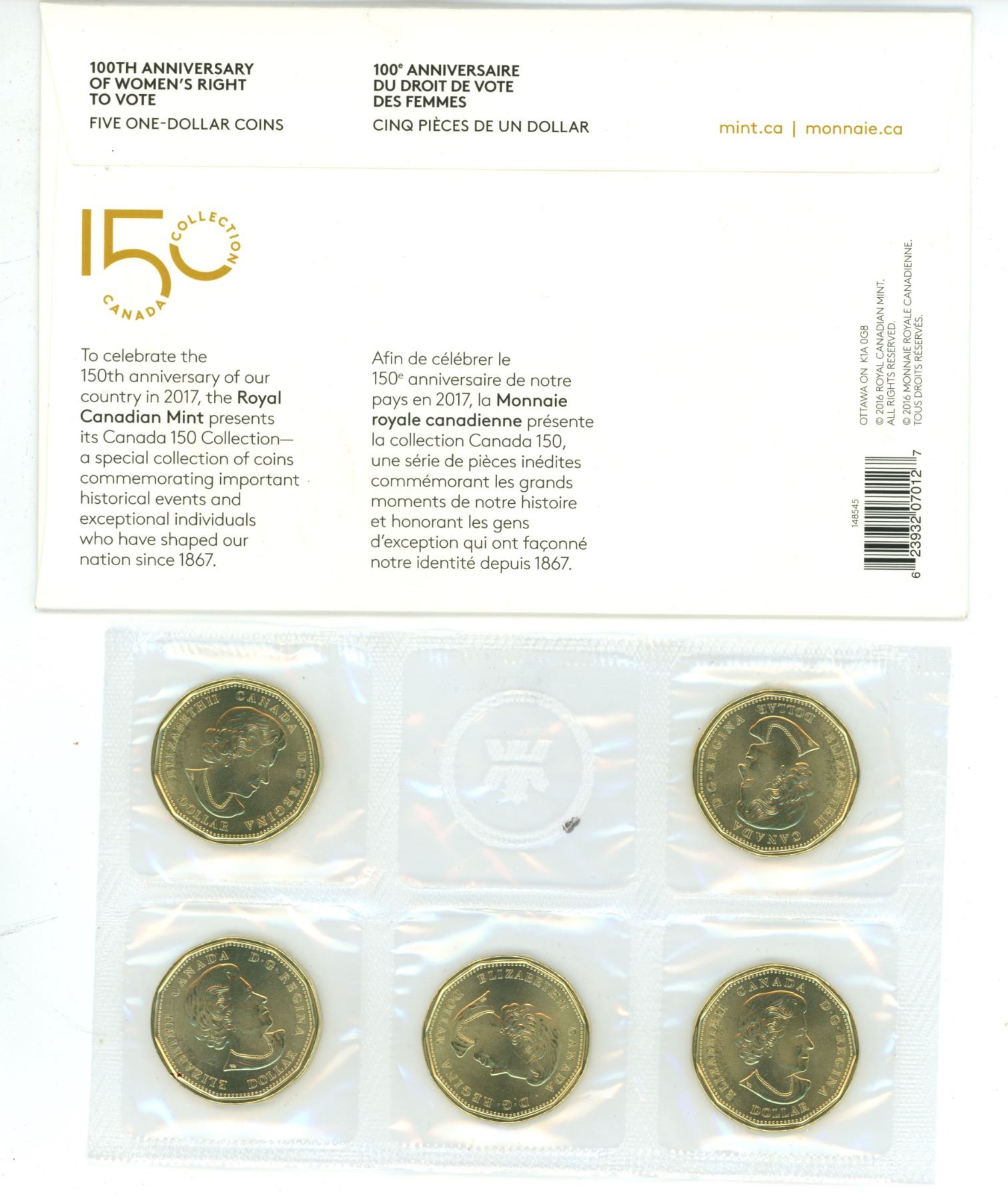 1916-2016 Canadian 5 loonie set - 100th Anniversary of Woman's right to vote