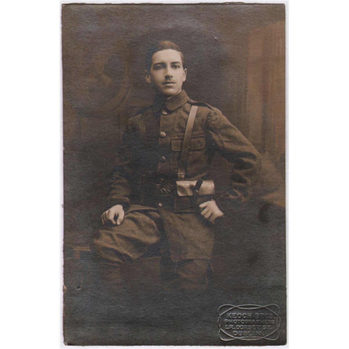 Portrait photographic postcard of an unknown member of the Irish Citizen Army by Keogh, Dublin. J. J. Walsh postcards of Kevin Barry and Tadhg Barry. Postcard of Dáil Éireann members 10 April 1919. Second edition of Dan Breen's My fight for Irish freedom, Talbot Press, 258pp, 1924 etc. (7 items)