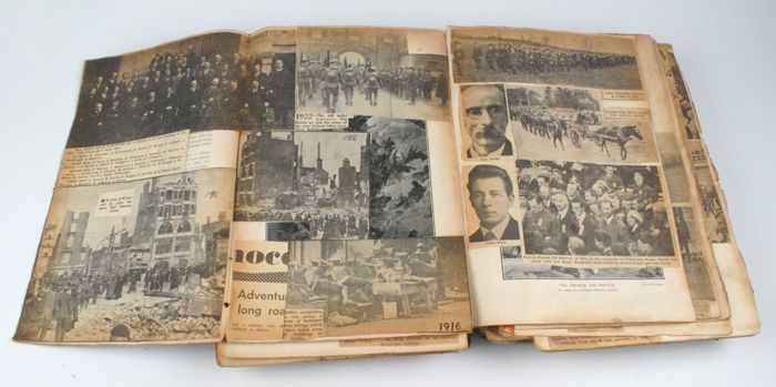 A large disbound scrapbook full of newspaper and magazine articles with photographs relating to the revolutionary period. Interestingly some articles have additional manuscript notes added by the compiler. Also with another two similar scrapbook the first relating to the Pheonix Murder Trial the second to Dublin history and a pamphlet The Case of Ireland's being bound by acts of Parliament made in England stated by William Molyneux of Dublin... Dublin printed 1782