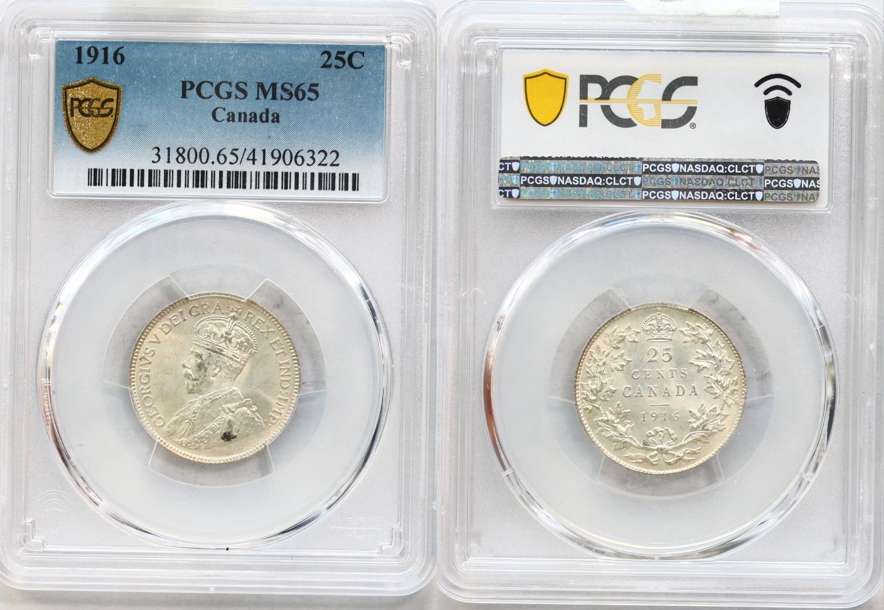 1916 25¢ PCGS/ICCS Gem Mint State-65 Fully brilliant and lustrous with just a hint of golden tone.