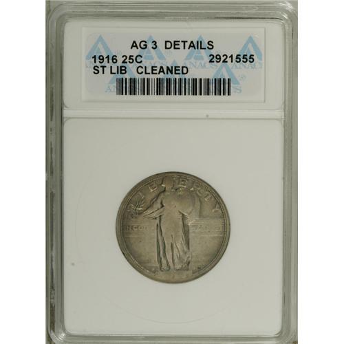 <B>1916 25C --Cleaned--ANACS. AG3 Details.</B></I> The lower loop of the 6 is faintly present, although the date is well worn. All other legends are clear, aside from a couple of faint letters in the Motto. A pinscratch crosses Liberty's left (facing) arm, but the pearl-gray piece is otherwise attractive for the grade.<BR><BR><b>Shipping:</b> Coin/Currency (<a target="_blank" href="http://www.heritageauctions.com/common/shipping.php">view shipping information</a>)