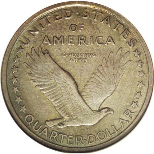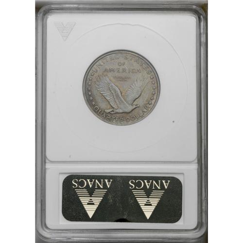 <B>1916<25C>--Cleaned--ANACS. AU Details, Net XF40.</B></I> The deep gray and blue toning that covers each side greatly subdues the underlying brightness from cleaning, done years ago. Somewhat irregularly struck, the surfaces are surprisingly free from abrasions. A lightly worn example of this key first-year issue.