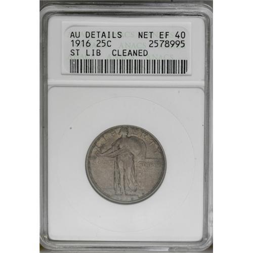 1916 25C --Cleaned--ANACS. AU Details, Net XF40. The de