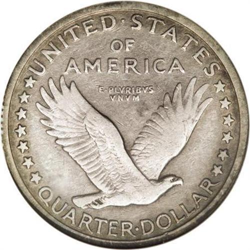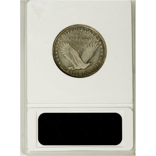 <B>1916 25C --Cleaned--ANACS. Fine 15 Details</B></I> This key date to the Standing Liberty quarter series displays semi-bright surfaces visited by whispers of crimson, light green, and yellow-gold patination, somewhat more so on the obverse. The date is clear, though the top parts of the 916 exhibit the usual softness. Under magnification, we note some fine hairlines, slightly more noticeable on the reverse. This piece will fit nicely into a mid-grade Standing Liberty quarter collection, despite the light cleaning.<BR><BR><b>Shipping:</b> Coins & Currency (<a target="_blank" href="http://www.heritageauctions.com/common/shipping.php">view shipping information</a>)
