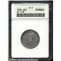 <B>1916<25C> Good 4 ANACS.</B></I> Light to medium gray with the lower half of all four digits being legible. Demand for affordable examples of this 20th century classic is at an all-time high.<BR><I>From the Virgil Farstad Collection, Part Two.</B></I> <BR><BR><B>Important notice:</B> Heritage usually auctions material at the rate of 200-250 lots per hour. On some occasions eBay Live bid software or the Internet may not be able to keep up with the pace of the auction. We recommend placing a realistic absentee bid now as insurance to avoid disappointment. Occasionally the auctioneer may eliminate or reject an eBay Live bid, and the auctioneer may also reopen a lot after the close of the eBay live bidding (usually because we missed an audience bid), and may reject your bid even if it shows you as the winning bidder. By bidding via eBay Live, you agree that Heritage may award the lot to another bidder at its sole discretion under the circumstances described above or any other reasonable circumstances. Since eBay bids are not shown to us until we open the lot on the floor, we treat those bids just like floor bids. In most cases the floor responds before the eBay bid is presented to us, due to Internet lag time, so for consistency we have made it a policy that floor bids are always considered first over tie eBay live bids. Also please note that all Heritage lots purchased through eBay Live carry a 20% Buyer's Premium. Please make sure you read the Terms and Conditions before you bid.