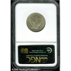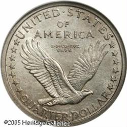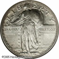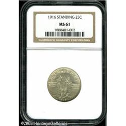 <B>1916 25C MS61 NGC.</B></I> The 1916 Standing Liberty quarter is a transitional issue that was struck at the end of the year with very few produced. This is a granular-surfaced coin that exhibits even gray color and a satiny overlay of mint luster. This coin has the appearance of a much higher grade, but it has a series of unfortunately placed milling marks on the face of Liberty.<BR><I>Purchased from Abner Kreisberg Corporation on July 11, 1980 for $3,000.</B></I><BR><I>From The Beverly Hills Collection.</B></I> Lot:6661