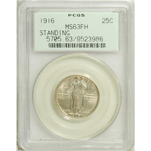 <B>1916 25C MS63 Full Head PCGS.</B></I> The 1916 quarter, struck in a transitional year between the Barber and Standing Liberty designs, is one of the most famous 20th century silver rarities. Only 52,000 pieces were struck and very few survive today. This is a satiny example that is essentially untoned, only showing trace amounts of color on either side. Well struck for this often poorly defined issue, and displaying just two or three trivial nicks on the obverse. The surfaces display a very distinct matte-like texture in the field areas, which actually serves to increase the noteworthy visual appeal of the piece. This exceedingly scarce key date quarter is housed in an earlier PCGS holder with a pale green label.<BR><I>From The Park Cities Collection.</B></I><BR><BR><b>Shipping:</b> Coin/Currency (<a target="_blank" href="http://www.heritageauctions.com/common/shipping.php">view shipping information</a>)