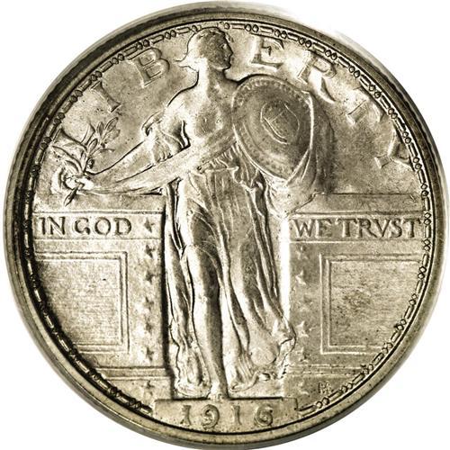 1916 25C MS64 PCGS. Beautiful, soft luster emanates fr
