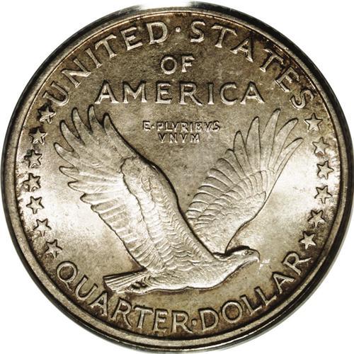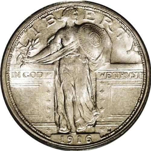 <B>1916<25C> MS65 Full Head PCGS.</B></I> This is one of the classic rarities among 20th century United States numismatic items, and it is seldom found in Gem condition. Although the PCGS data shows a considerable quantity of Gem or finer examples with full head details, these numbers are certainly inflated by resubmissions. In the case of this 1916 Standing Liberty quarter, we would not be surprised to learn that 50% or more of the population are actually resubmissions.<BR> This is a pleasing example with fully lustrous obverse and reverse surfaces. The obverse is essentially brilliant with the slightest ivory color and the reverse is very lightly toned with champagne and peripheral gold. Population: 69 in 65, 13 finer (4/06).
