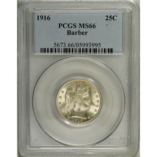 <B>1916 25C MS66 PCGS.</B></I> A scintillating Premium Gem that is virtually untoned and immediately dazzles the viewer with dynamic luster. Although several hundred examples of this final year transitional issue have survived in Mint State, only a tiny percentage qualities at this elite grade level. Population: 20 in 66, 3 finer (11/06).<BR><BR><b>Shipping:</b> Coin/Currency (<a target="_blank" href="http://www.heritageauctions.com/common/shipping.php">view shipping information</a>)