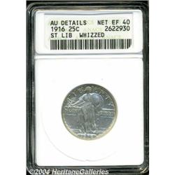 <B>1916<25C>--Whizzed--ANACS. AU Details, Net XF40.</B></I> Abnormally bright, hairlined, and glossy from the obvious cleaning. There are no detrimental contact marks. The 1916 Standing Liberty Quarter is a numismatic classic, and its production of 52,000 pieces is the second lowest of any 20th century circulating silver issue. Only the 1913-S Quarter has a smaller mintage.<BR><I>From The Dennis Gundy Collection.</B></I> <BR><BR><B>Important notice:</B> Heritage usually auctions material at the rate of 200-250 lots per hour. On some occasions eBay Live bid software or the Internet may not be able to keep up with the pace of the auction. We recommend placing a realistic absentee bid now as insurance to avoid disappointment. Occasionally the auctioneer may eliminate or reject an eBay Live bid, and the auctioneer may also reopen a lot after the close of the eBay live bidding (usually because we missed an audience bid), and may reject your bid even if it shows you as the winning bidder. By bidding via eBay Live, you agree that Heritage may award the lot to another bidder at its sole discretion under the circumstances described above or any other reasonable circumstances. Since eBay bids are not shown to us until we open the lot on the floor, we treat those bids just like floor bids. In most cases the floor responds before the eBay bid is presented to us, due to Internet lag time, so for consistency we have made it a policy that floor bids are always considered first over tie eBay live bids. Also please note that all Heritage lots purchased through eBay Live carry a 20% Buyer's Premium. Please make sure you read the Terms and Conditions before you bid. </span></font></tr></table></td></tr></table>