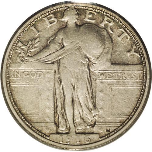 <B>1916<25C> XF40 PCGS.</B></I> An important circulated survivor of this first-year issue, the faces exhibit a silver-gray appearance with pale russet iridescence about the peripheries. Both sides are quite well detailed within the confines of this grade level. There are no distracting abrasions on this pleasing specimen.