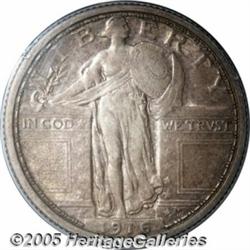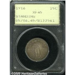 <B>1916 25C XF45 PCGS.</B></I> This is a richly toned and blatantly original example whose surfaces are overlaid in antique-copper shades. The color deepens to charcoal hues toward the rims. There are no outwardly distracting circulation marks, and the devices retain overall bold striking definition despite a little light rub. An attractive lightly circulated representative of the issue for the collector who appreciates originality. Housed in a very early PCGS holder.