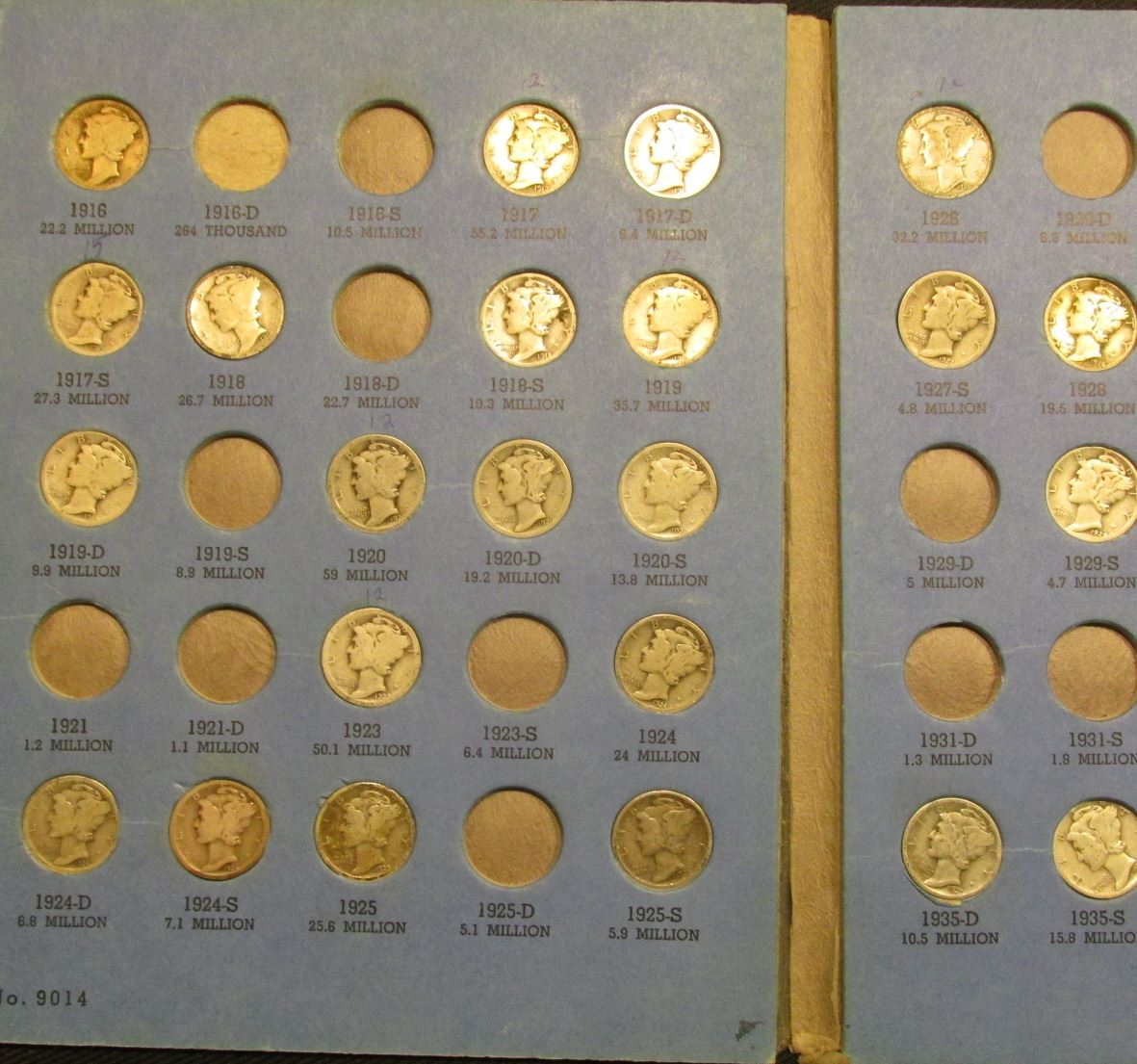 1916-45 Partial Set of Mercury Dimes in a blue Whitman folder. (60 pcs.).