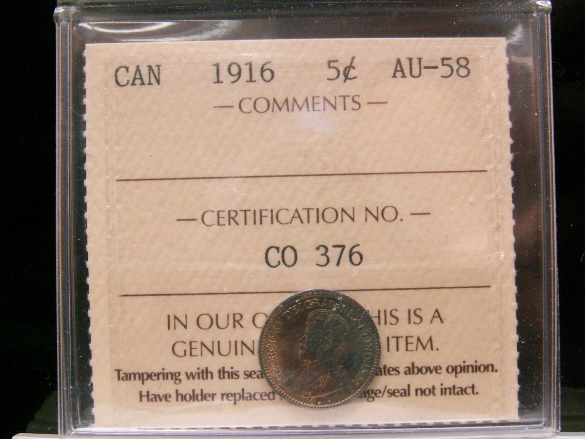 1916 5¢ ICCS AU58