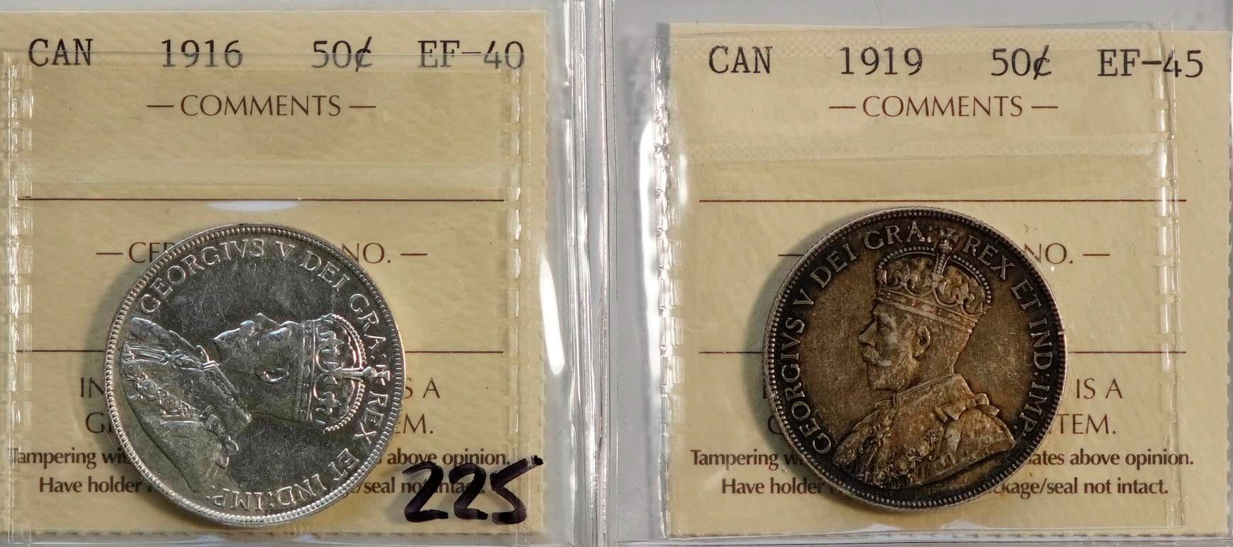 1916 50¢ Extra Fine-40, & 1919 Choice Extra Fine-45 both ICCS graded.