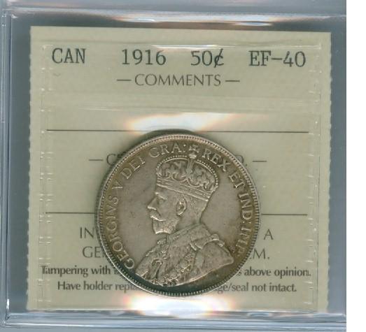 1916 50¢ ICCS EF40. Light brownish tint.