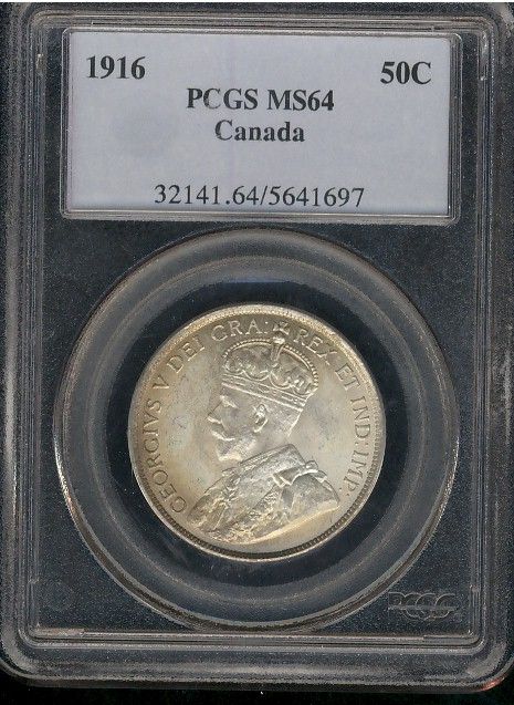 1916 50¢ PCGS MS64. Real strong lustre, PQ for issue.