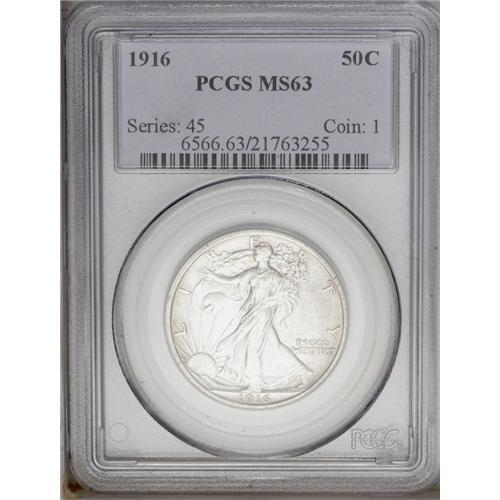 1916 50C MS63 PCGS. The design elements are sharply im 1916[50C] MS63 PCGS.