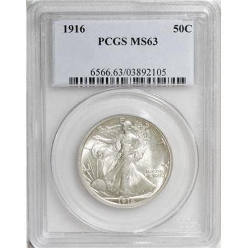 <B>1916 50C MS63 PCGS.</B></I> PCGS Population (239/597). NGC Census: (206/497). Mintage: 608,000. Numismedia Wsl. Price for NGC/PCGS coin in MS63: $420. (#6566)<BR><BR><B>Coin Engraver:</B> Adolph A. Weinman<BR><BR><b>Shipping:</b> Coins & Currency (<a target="_blank" href="http://www.heritageauctions.com/common/shipping.php">view shipping information</a>)