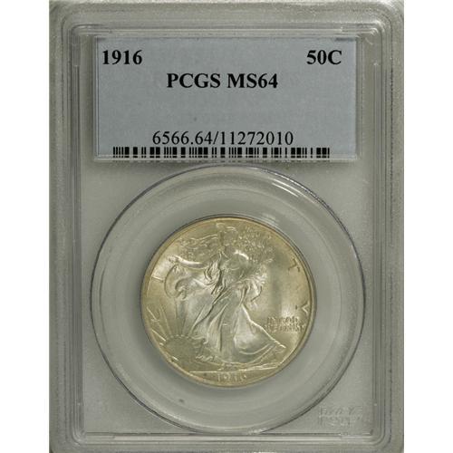 <B>1916 50C MS64 PCGS.</B></I> Well struck with pleasing gunmetal-gray toning throughout. A compelling example that is lustrous and undiminished by a few faint abrasions.<BR><BR><b>Shipping:</b> Coins & Currency (<a target="_blank" href="http://www.heritageauctions.com/common/shipping.php">view shipping information</a>)