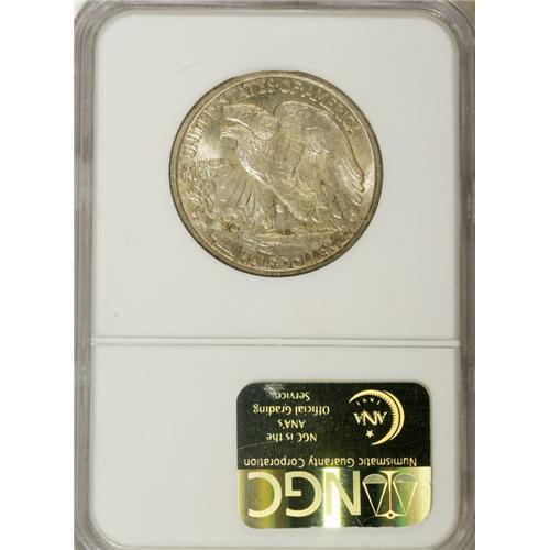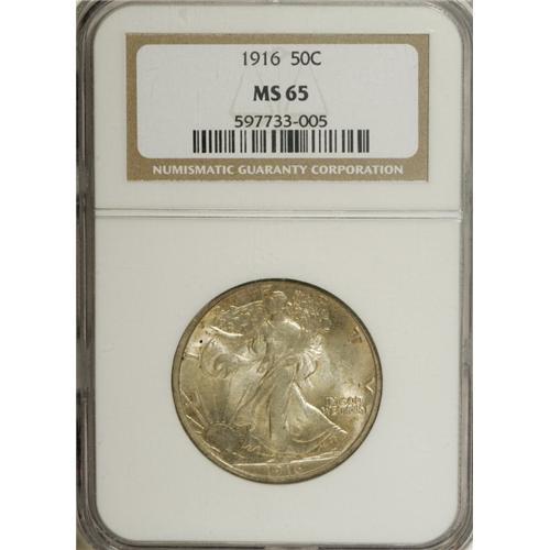 <B>1916 50C MS65 NGC.</B></I> Lemon-gold and ice-blue toning envelops this lustrous and sharply struck Gem. The obverse is beautifully smooth, and the eagle has only a few small marks.<BR><BR><b>Shipping:</b> Coins & Currency (<a target="_blank" href="http://www.heritageauctions.com/common/shipping.php">view shipping information</a>)