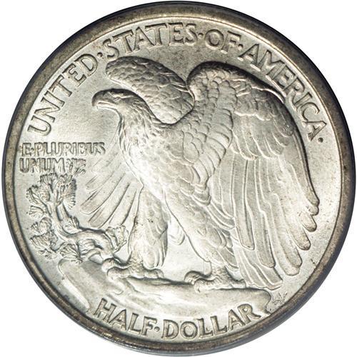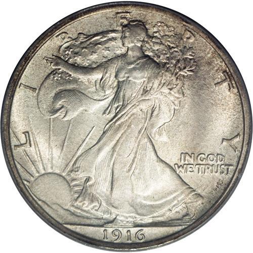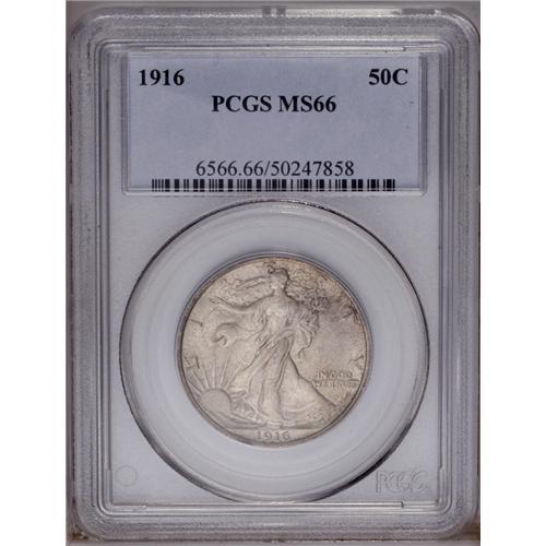 <B>1916<50C> MS66 PCGS.</B></I> A fairly even coating of steel-gray toning blankets each side, and lends a fully original appearance. A magnificently preserved Premium Gem with good underlying luster. The strike is bold on Liberty's branch hand and head, and the eagle's often problematic back leg is also crisply rendered. The initial Philadelphia Mint issue of this popular series also has one of the lowest business strike productions of the type. Population: 72 in 66, 4 finer (1/06).
