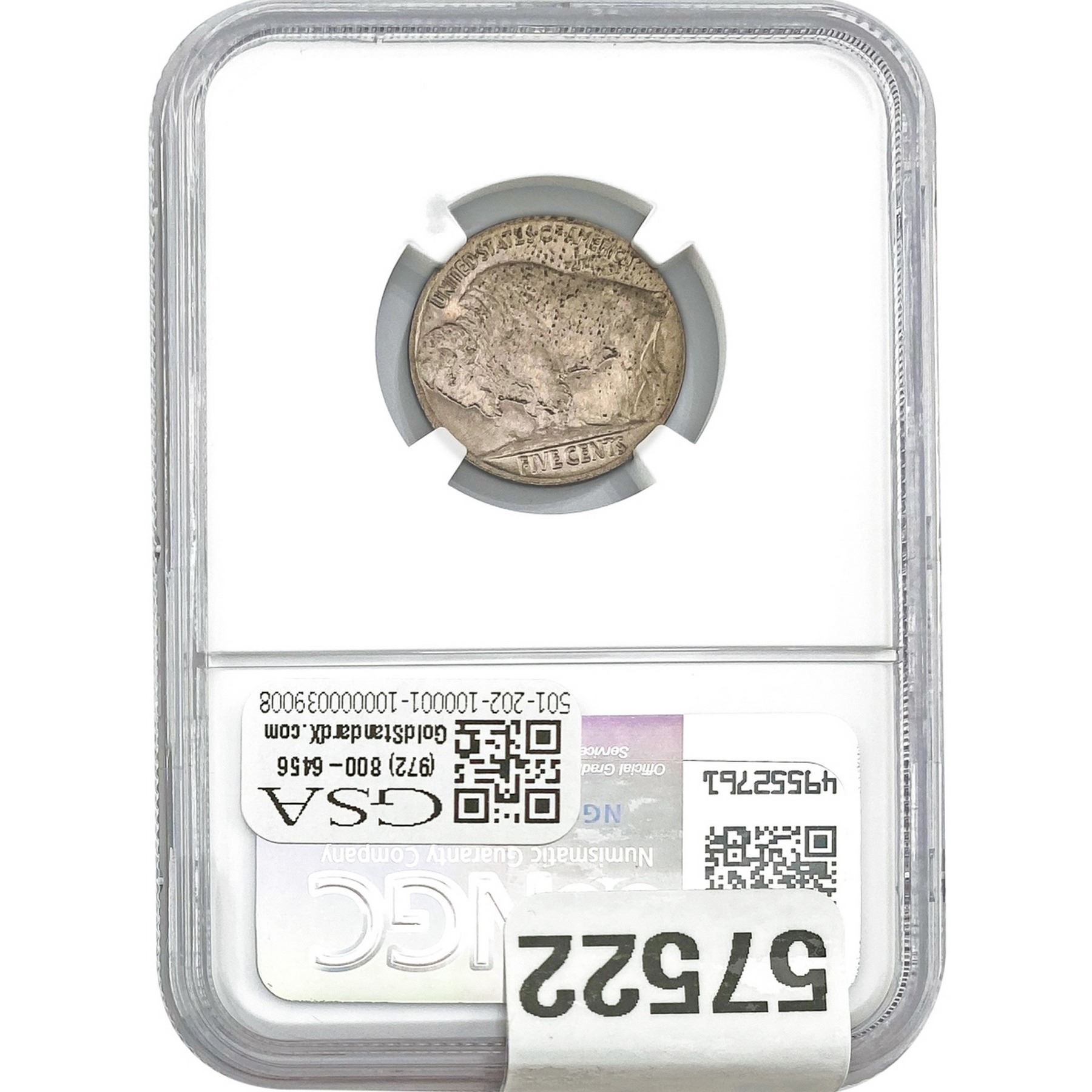 e. Coins sold referencing a third-party grading service are sold “AS IS” without any express or implied warranty, except for a guarantee by GSA that they are genuine. Removal or alteration of the holder, voids all of Bidder’s claims concerning that Product. Certain warranties may be available from the grading services and Bidders are referred to them for further details: Numismatic Guaranty Corporation (NGC), PO Box 4776, Sarasota, FL 34230, www.ngccoin.com/services/writtenguarantee.asp; Professional Coin Grading Services (PCGS), PO Box 9458, Newport Beach, CA 92658, www.pcgs.com/guarantee.html; ANACS, 6555 S. Kenton St., Ste. 303, Englewood, CO 80111; and Independent Coin Grading Co. (ICG), 7901 East Bellview, Ave., Suite 50, Englewood, CO 80111.