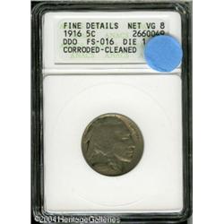 1916 5C Doubled Die Obverse--Corroded, Cleaned--ANAC <B>1916 5C Doubled Die Obverse--Corroded, Cleaned--ANACS. Fine Details, Net VG8.</B></I> FS-016. Die One. Despite light porosity, it is very easy to see the doubling on the 6 in the date. The estimated total population of this popular error is about 100 pieces. <BR><BR><B>Important notice:</B> Heritage usually auctions material at the rate of 200-250 lots per hour. On some occasions eBay Live bid software or the Internet may not be able to keep up with the pace of the auction. We recommend placing a realistic absentee bid now as insurance to avoid disappointment. Occasionally the auctioneer may eliminate or reject an eBay Live bid, and the auctioneer may also reopen a lot after the close of the eBay live bidding (usually because we missed an audience bid), and may reject your bid even if it shows you as the winning bidder. By bidding via eBay Live, you agree that Heritage may award the lot to another bidder at its sole discretion under the circumstances described above or any other reasonable circumstances. Since eBay bids are not shown to us until we open the lot on the floor, we treat those bids just like floor bids. In most cases the floor responds before the eBay bid is presented to us, due to Internet lag time, so for consistency we have made it a policy that floor bids are always considered first over tie eBay live bids. Also please note that all Heritage lots purchased through eBay Live carry a 20% Buyer's Premium. Please make sure you read the Terms and Conditions before you bid. This lot is being auctioned in conjunction with a live floor auction by Heritage Galleries & Auctioneers. All final auction and invoice information will be supplied by Heritage Galleries & Auctioneers, and all other information should be considered preliminary. Lot:5568