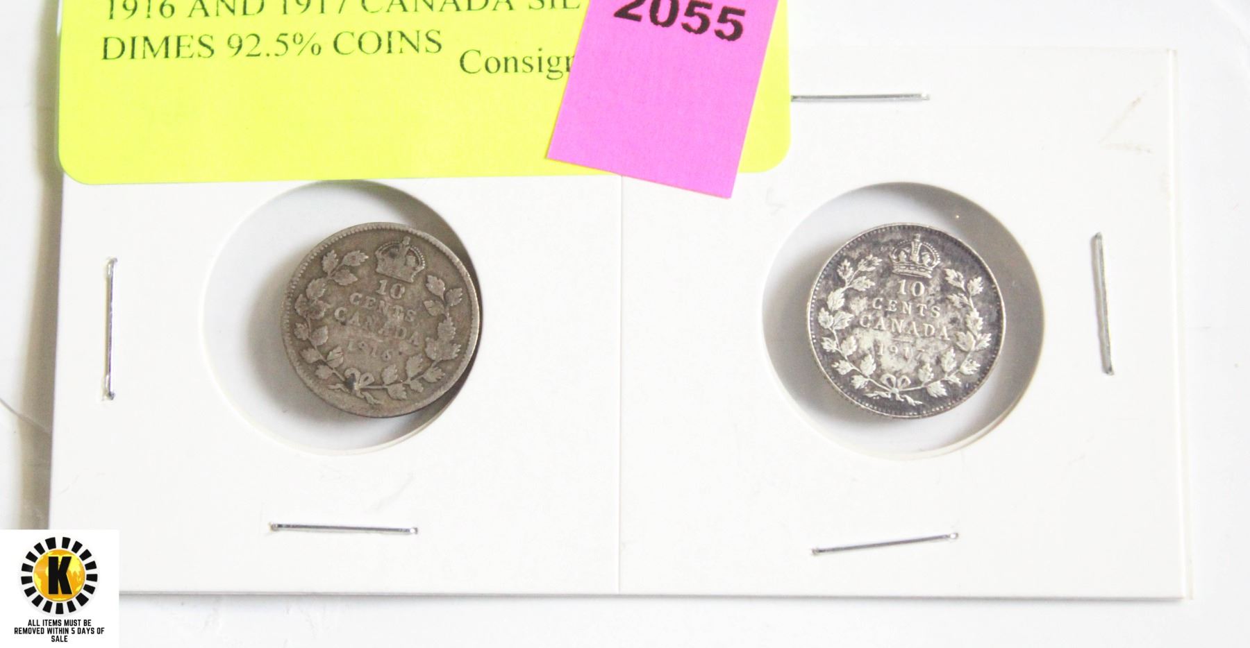 1916 AND 1917 CANADA SILVER DIMES 92.5% COINS