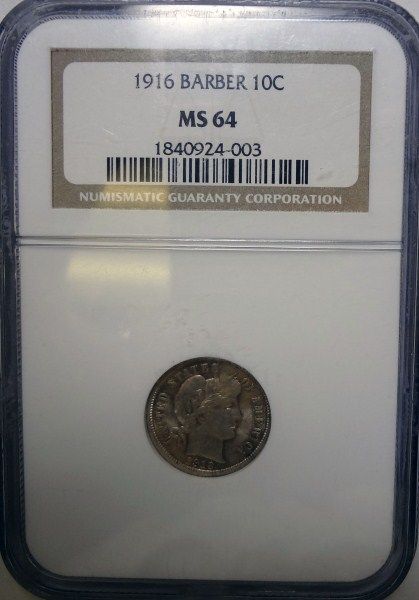 1916 BARBER DIME NGC MS64 BEAUTIFUL