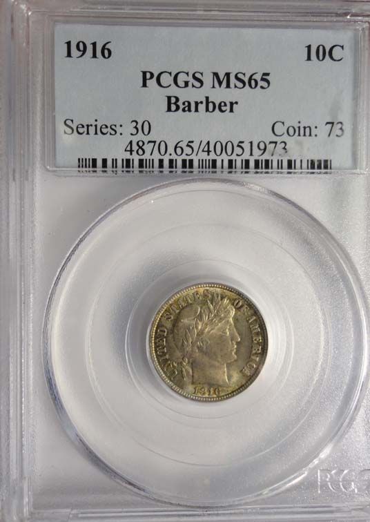 1916 BARBER SILVER DIME PCGS MS65 NICELY TONED